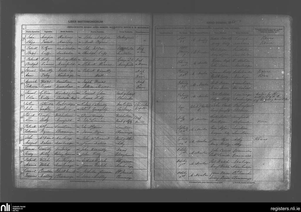 Newbridge; County of Kildare; Diocese of Kildare and Leighlin. Marriages, Nov. 1864 to Oct. 1865