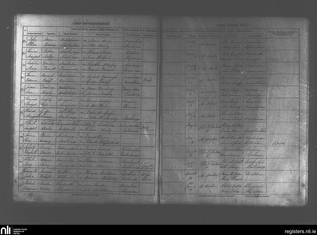 Newbridge; County of Kildare; Diocese of Kildare and Leighlin. Marriages, Oct. 1865 to Jan. 1866