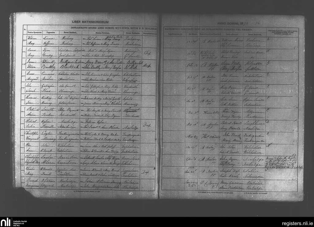 Newbridge; County of Kildare; Diocese of Kildare and Leighlin. Marriages, Sep. 1873 to Jan. 1874