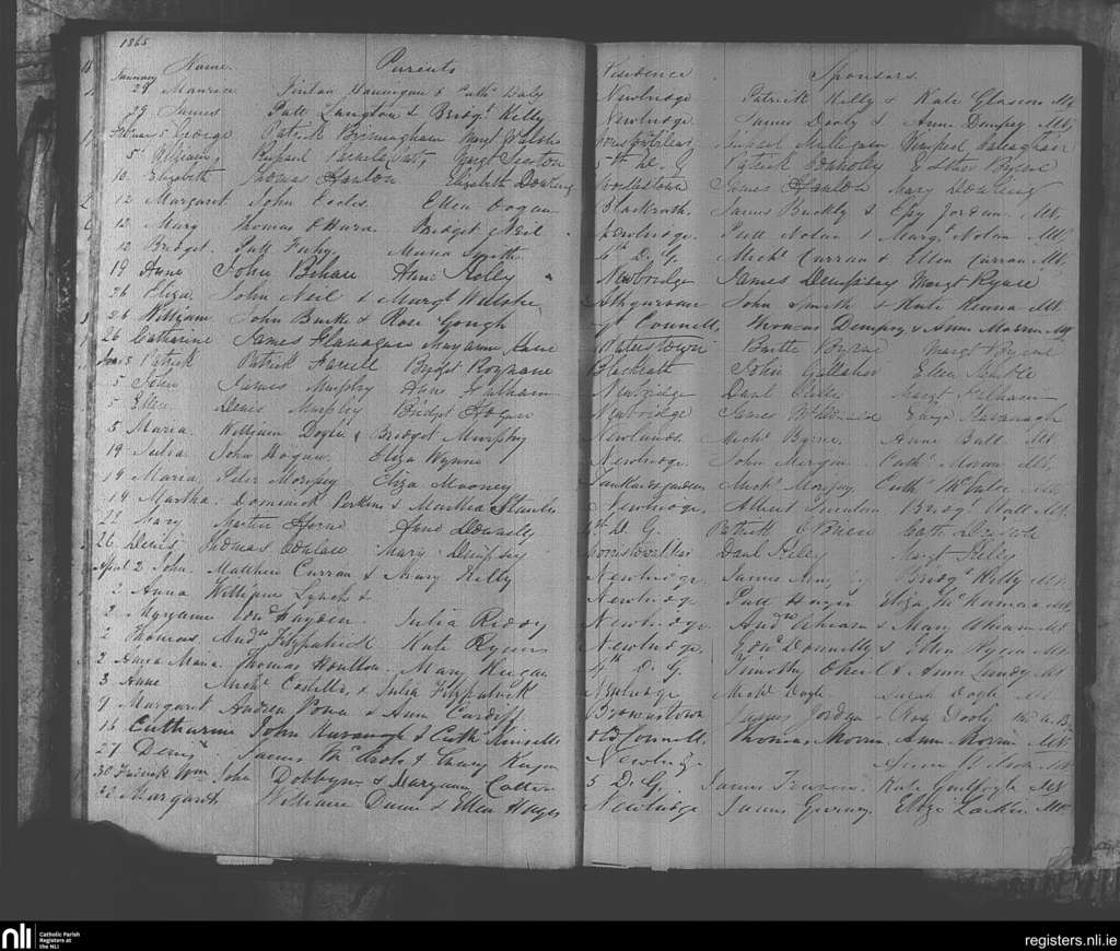 Newbridge; County of Kildare; Diocese of Kildare and Leighlin. Baptisms, Jan. 1865 to Apr. 1865