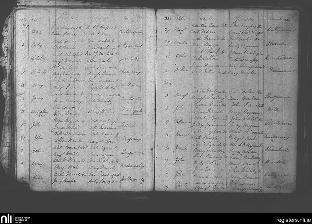 Paulstown; County of Kilkenny; Diocese of Kildare and Leighlin. Baptisms, May 1832 to June 1832