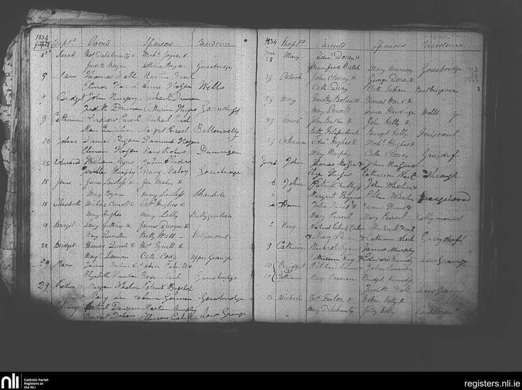 Paulstown; County of Kilkenny; Diocese of Kildare and Leighlin. Baptisms, June 1834 to July 1834