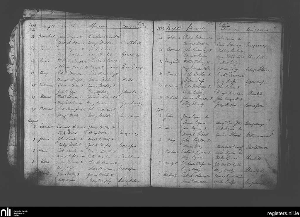 Paulstown; County of Kilkenny; Diocese of Kildare and Leighlin. Baptisms, July 1834 to Sep. 1834