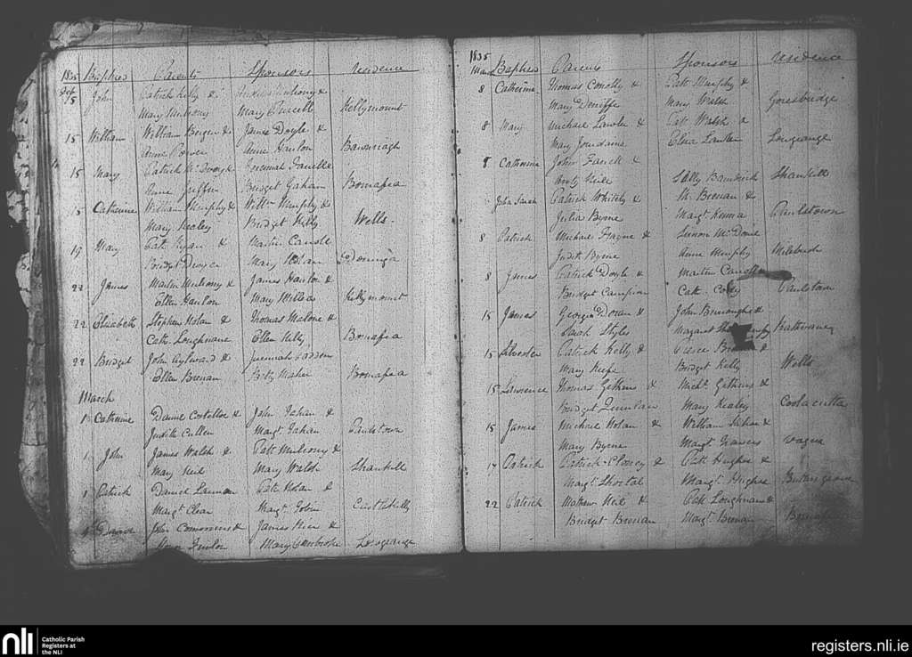 Paulstown; County of Kilkenny; Diocese of Kildare and Leighlin. Baptisms, Feb. 1835 to Mar. 1835