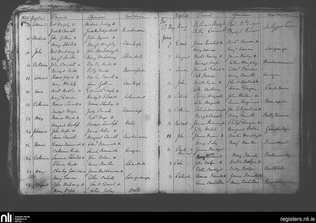 Paulstown; County of Kilkenny; Diocese of Kildare and Leighlin. Baptisms, May 1835 to June 1835