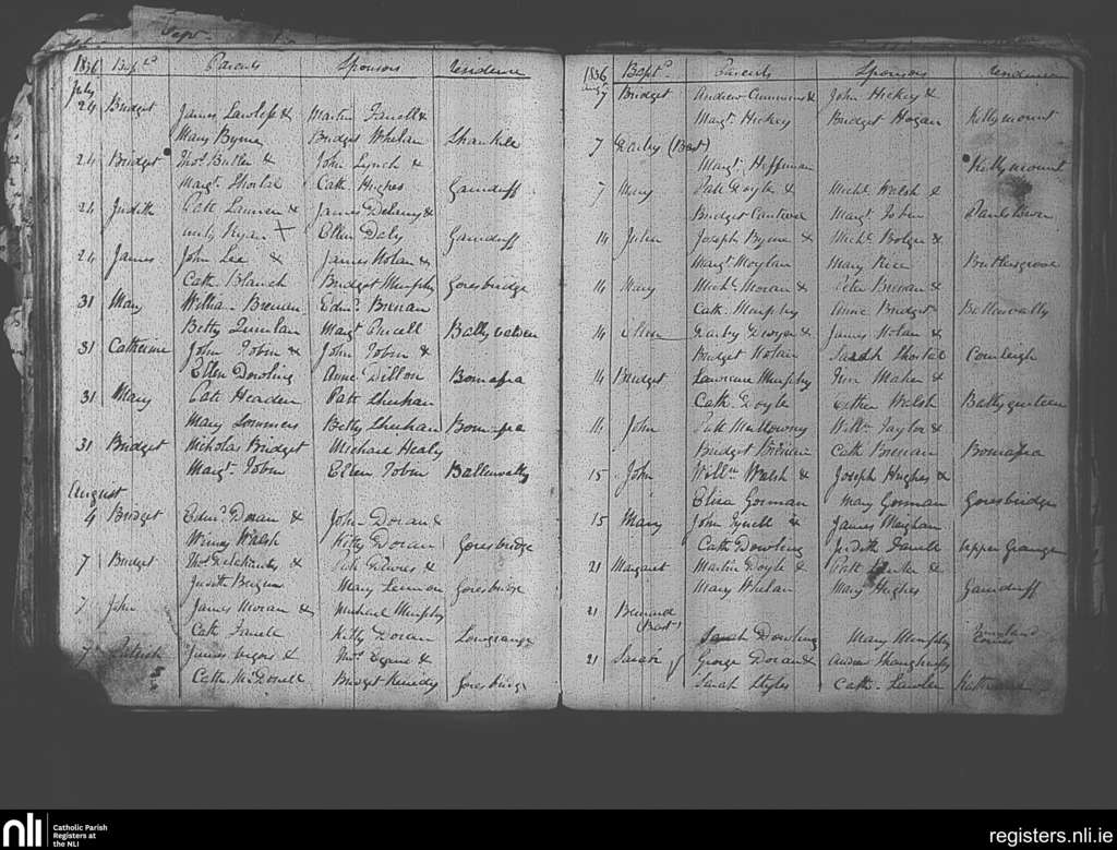 Paulstown; County of Kilkenny; Diocese of Kildare and Leighlin. Baptisms, July 1836 to Aug. 1836