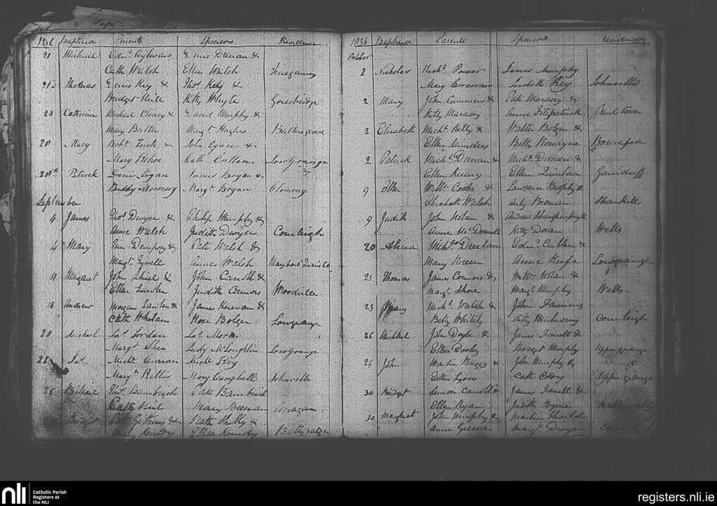 Paulstown; County of Kilkenny; Diocese of Kildare and Leighlin. Baptisms, Aug. 1836 to Oct. 1836