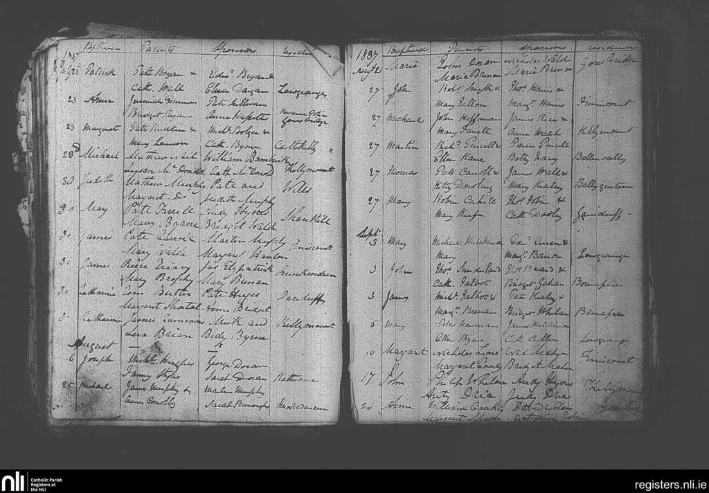 Paulstown; County of Kilkenny; Diocese of Kildare and Leighlin. Baptisms, July 1837 to Sep. 1837