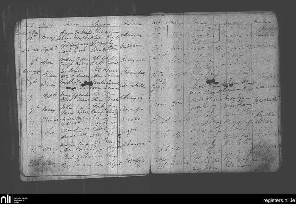 Paulstown; County of Kilkenny; Diocese of Kildare and Leighlin. Baptisms, Oct. 1856 to Feb. 1857
