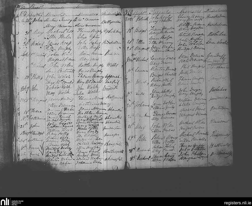 Paulstown; County of Kilkenny; Diocese of Kildare and Leighlin. Baptisms, Aug. 1868 to Jan. 1869