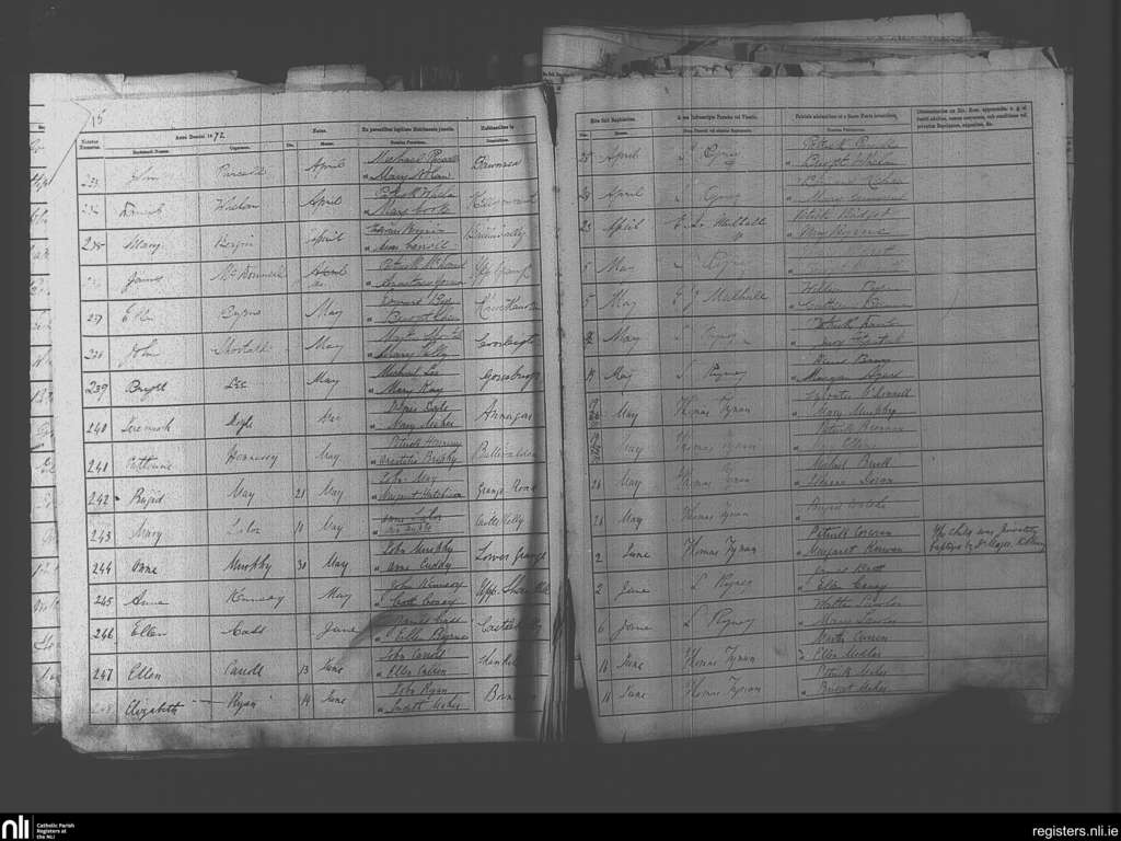 Paulstown; County of Kilkenny; Diocese of Kildare and Leighlin. Baptisms, Apr. 1872 to June 1872