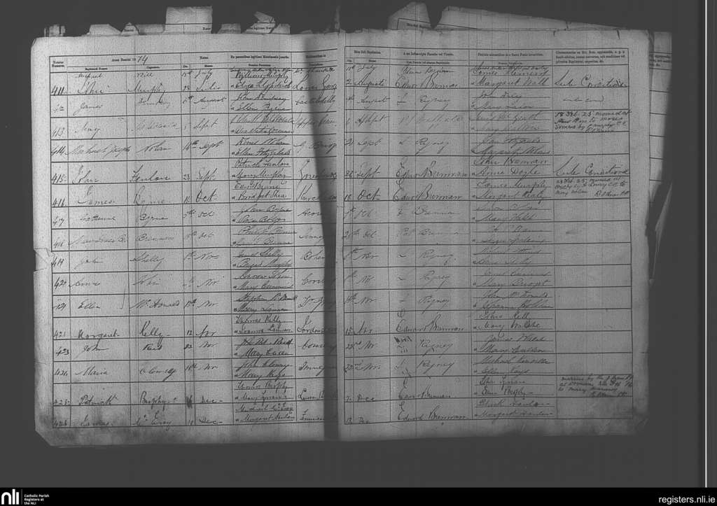 Paulstown; County of Kilkenny; Diocese of Kildare and Leighlin. Baptisms, July 1874 to Dec. 1874