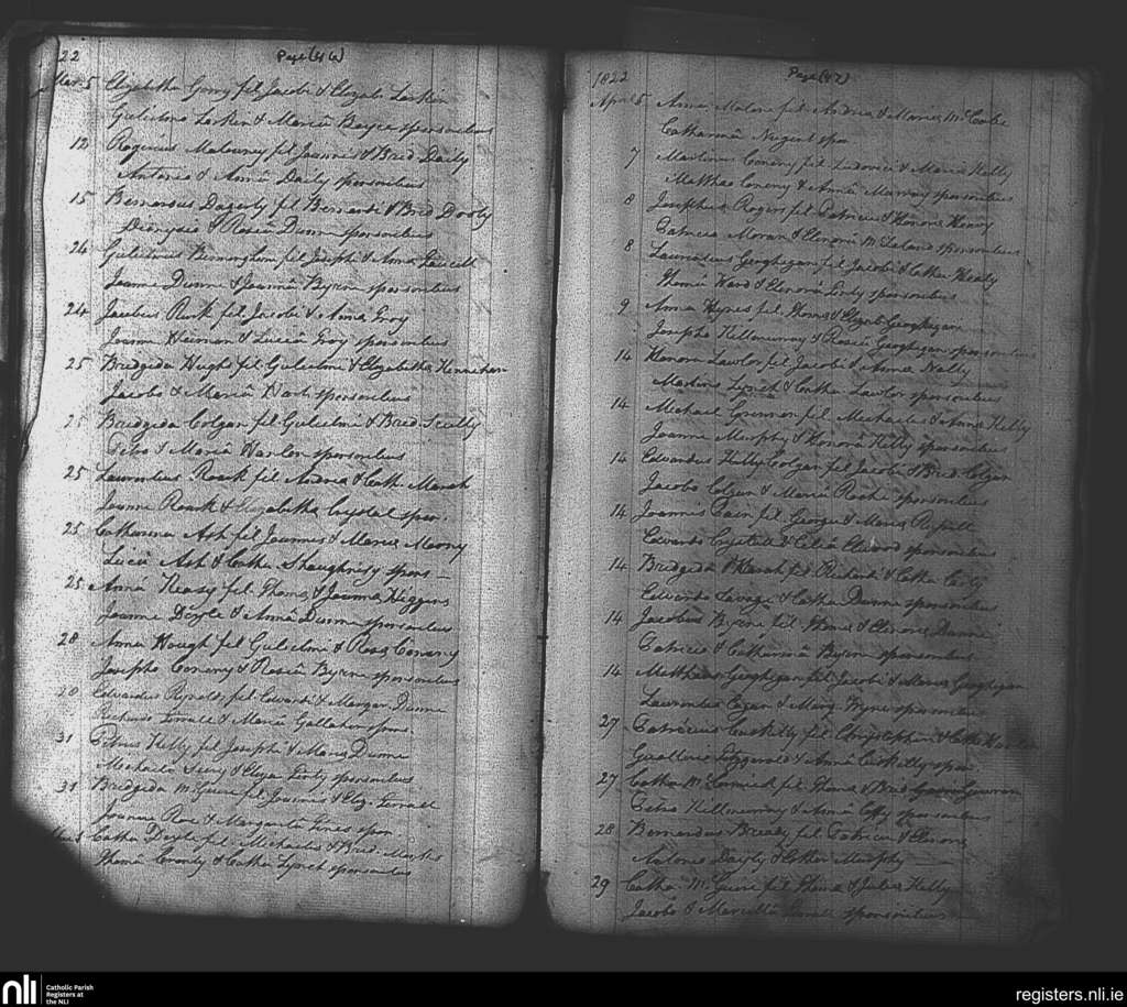 Philipstown; County of Offaly; Diocese of Kildare and Leighlin. Baptisms, Mar. 1822 to Apr. 1822