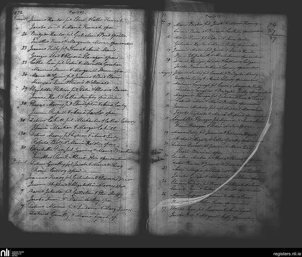 Philipstown; County of Offaly; Diocese of Kildare and Leighlin. Baptisms, June 1822 to Aug. 1822