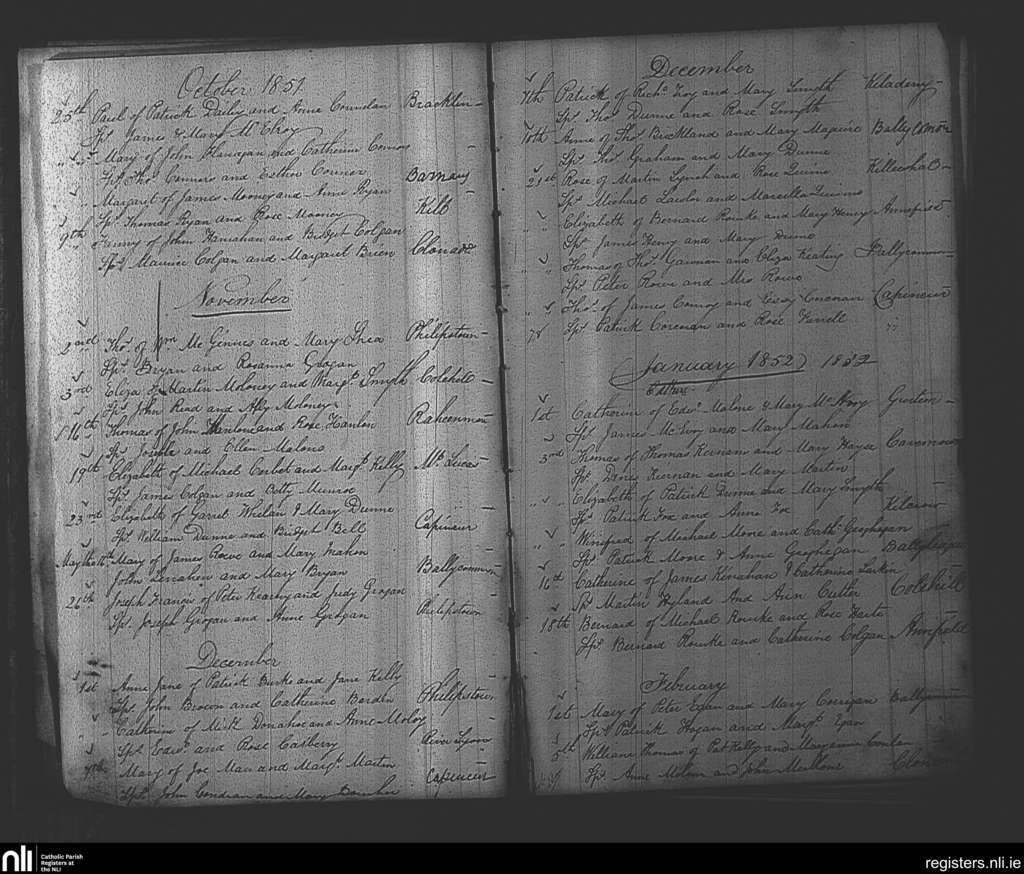 Philipstown; County of Offaly; Diocese of Kildare and Leighlin. Baptisms, May 1851 to Feb. 1852