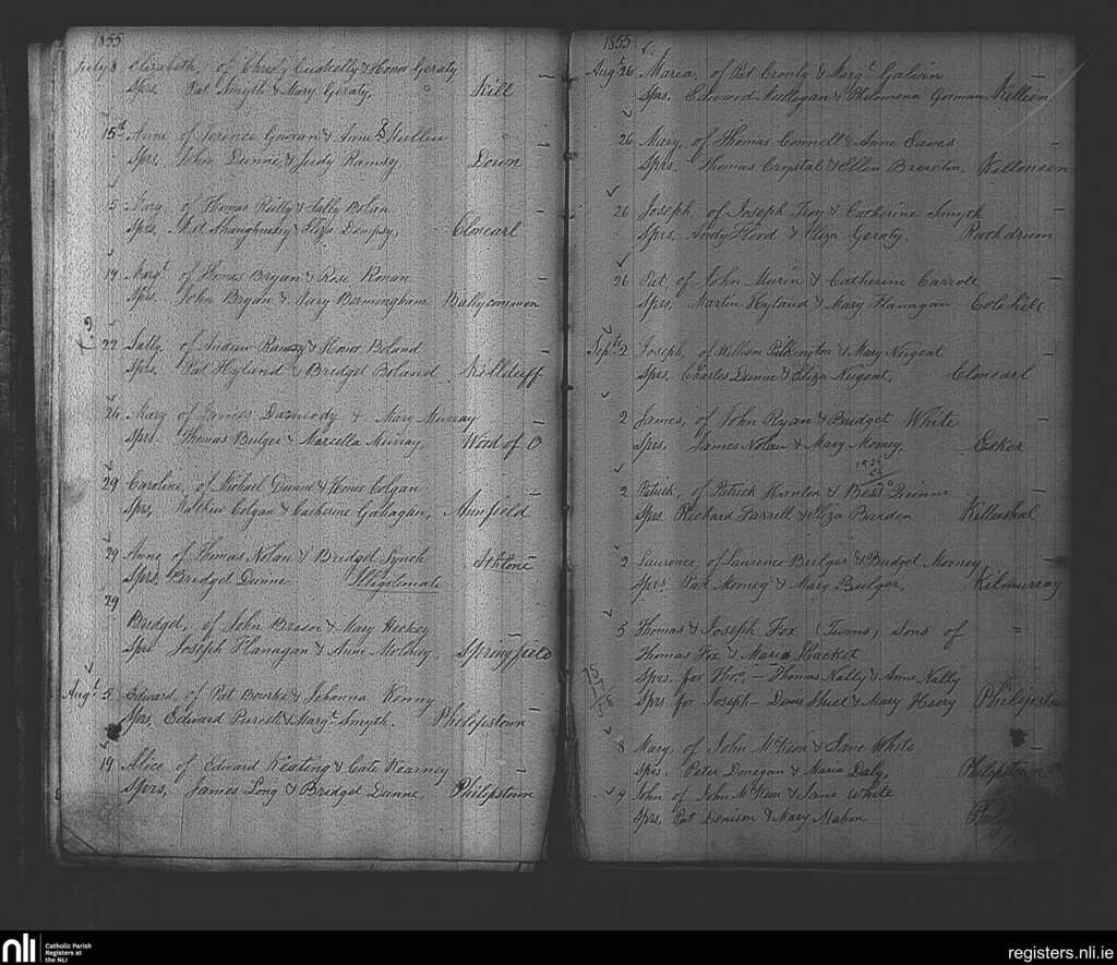 Philipstown; County of Offaly; Diocese of Kildare and Leighlin. Baptisms, July 1855 to Sep. 1855