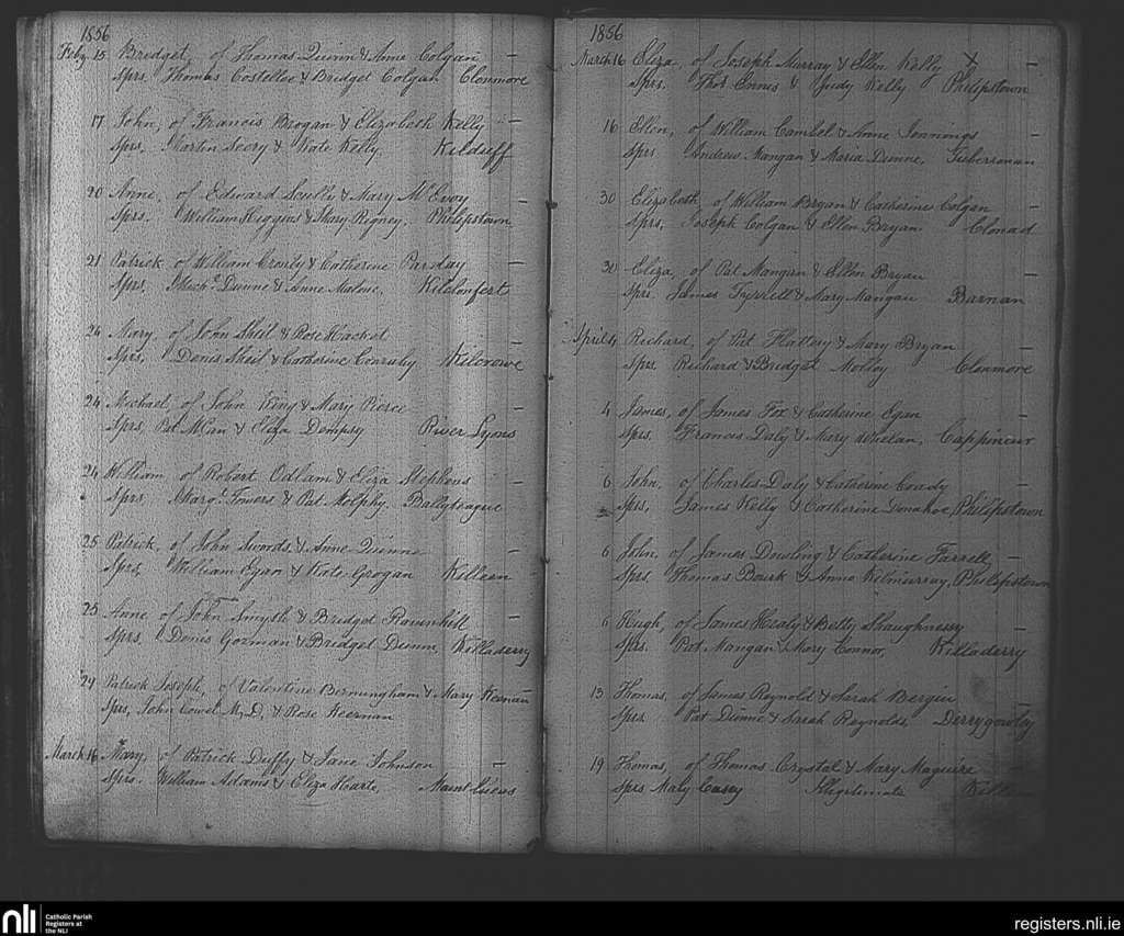 Philipstown; County of Offaly; Diocese of Kildare and Leighlin. Baptisms, Feb. 1856 to Apr. 1856