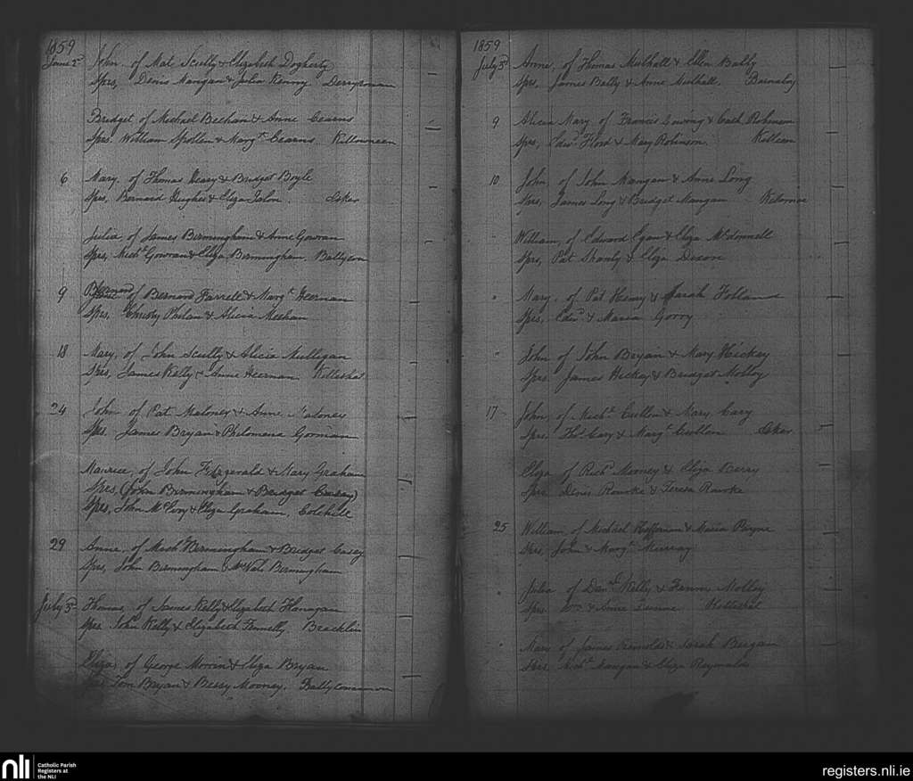 Philipstown; County of Offaly; Diocese of Kildare and Leighlin. Baptisms, June 1859 to July 1859