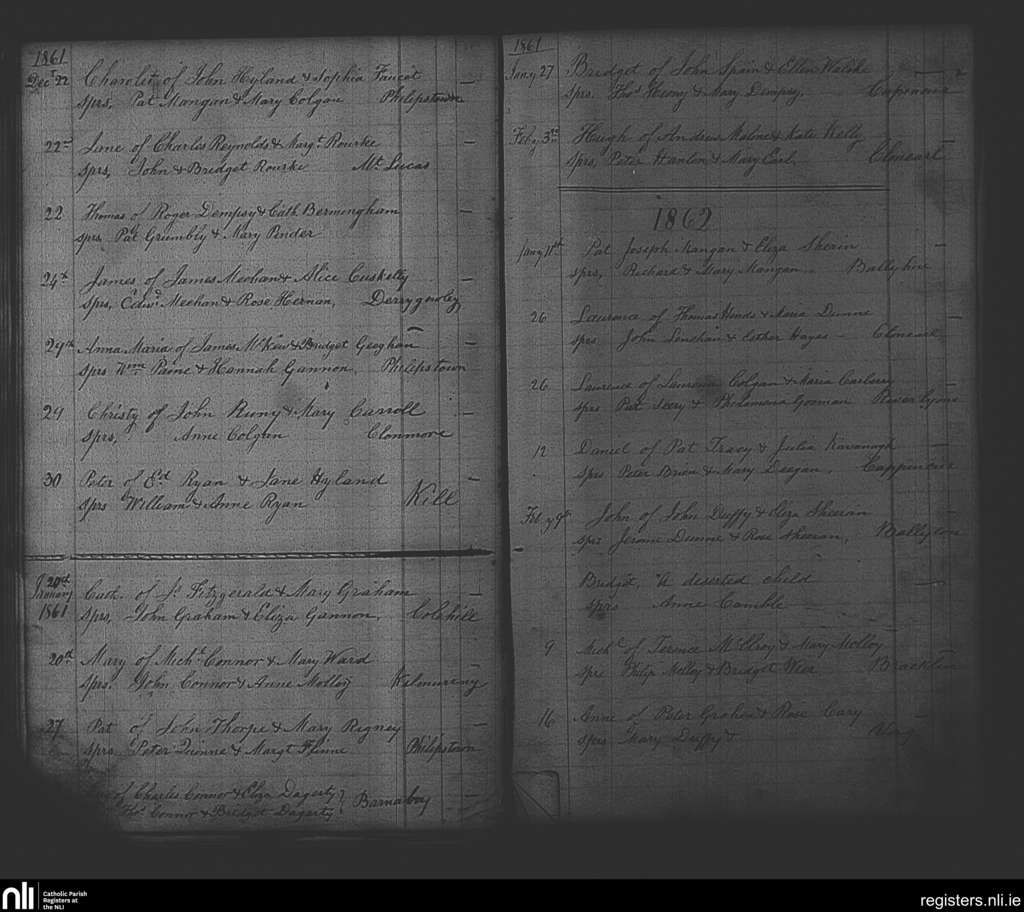 Philipstown; County of Offaly; Diocese of Kildare and Leighlin. Baptisms, Jan. 1861 to Feb. 1862