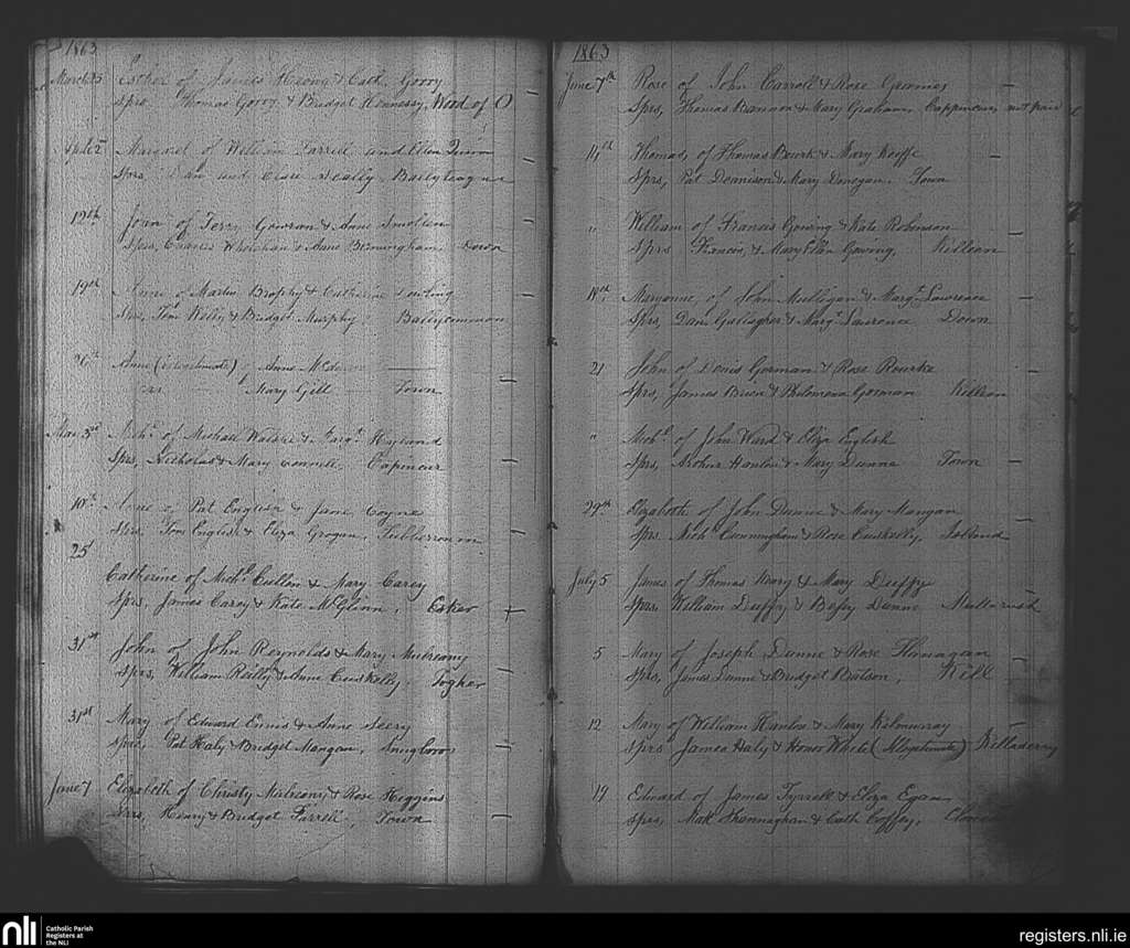 Philipstown; County of Offaly; Diocese of Kildare and Leighlin. Baptisms, Mar. 1863 to July 1863