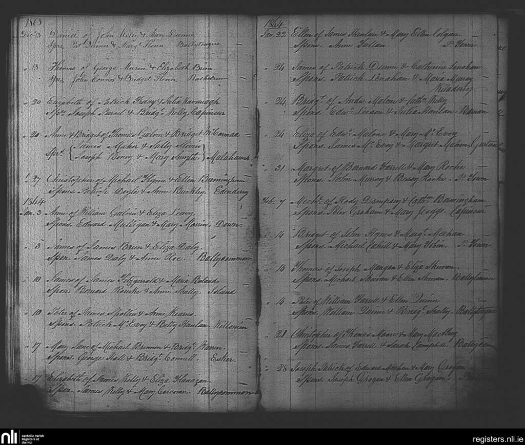 Philipstown; County of Offaly; Diocese of Kildare and Leighlin. Baptisms, Dec. 1863 to Feb. 1864