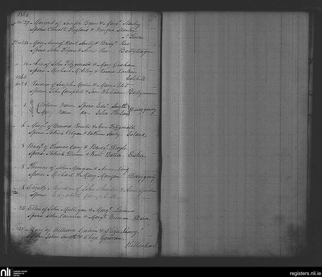 Philipstown; County of Offaly; Diocese of Kildare and Leighlin. Baptisms, Nov. 1864 to Jan. 1865