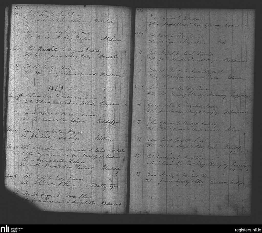 Philipstown; County of Offaly; Diocese of Kildare and Leighlin. Marriages, Oct. 1861 to Nov. 1862
