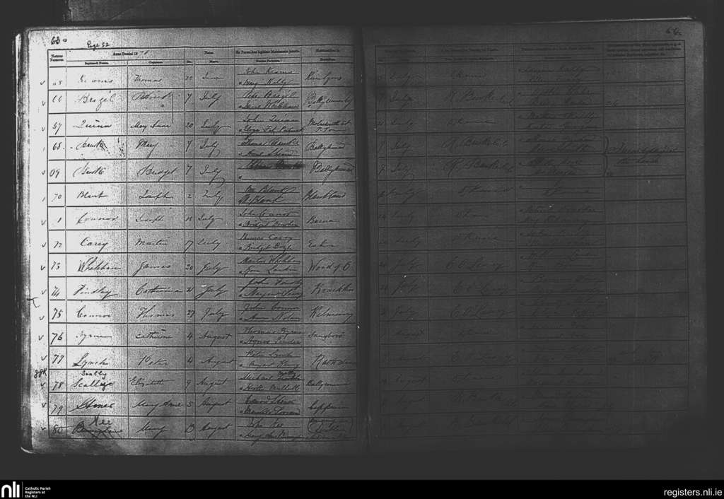 Philipstown; County of Offaly; Diocese of Kildare and Leighlin. Baptisms, Aug. 1874 to Oct. 1874