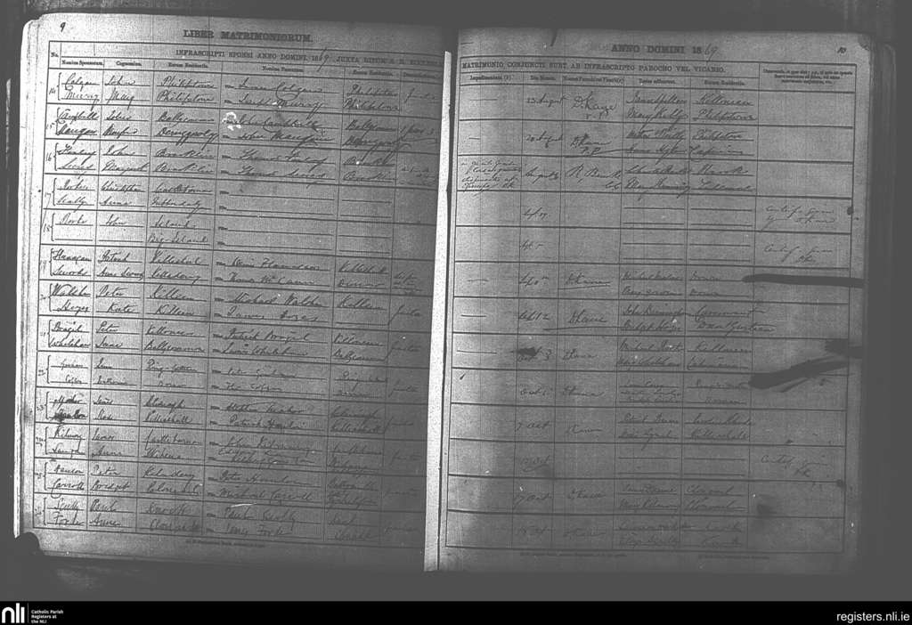 Philipstown; County of Offaly; Diocese of Kildare and Leighlin. Marriages, Aug. 1869 to Oct. 1869