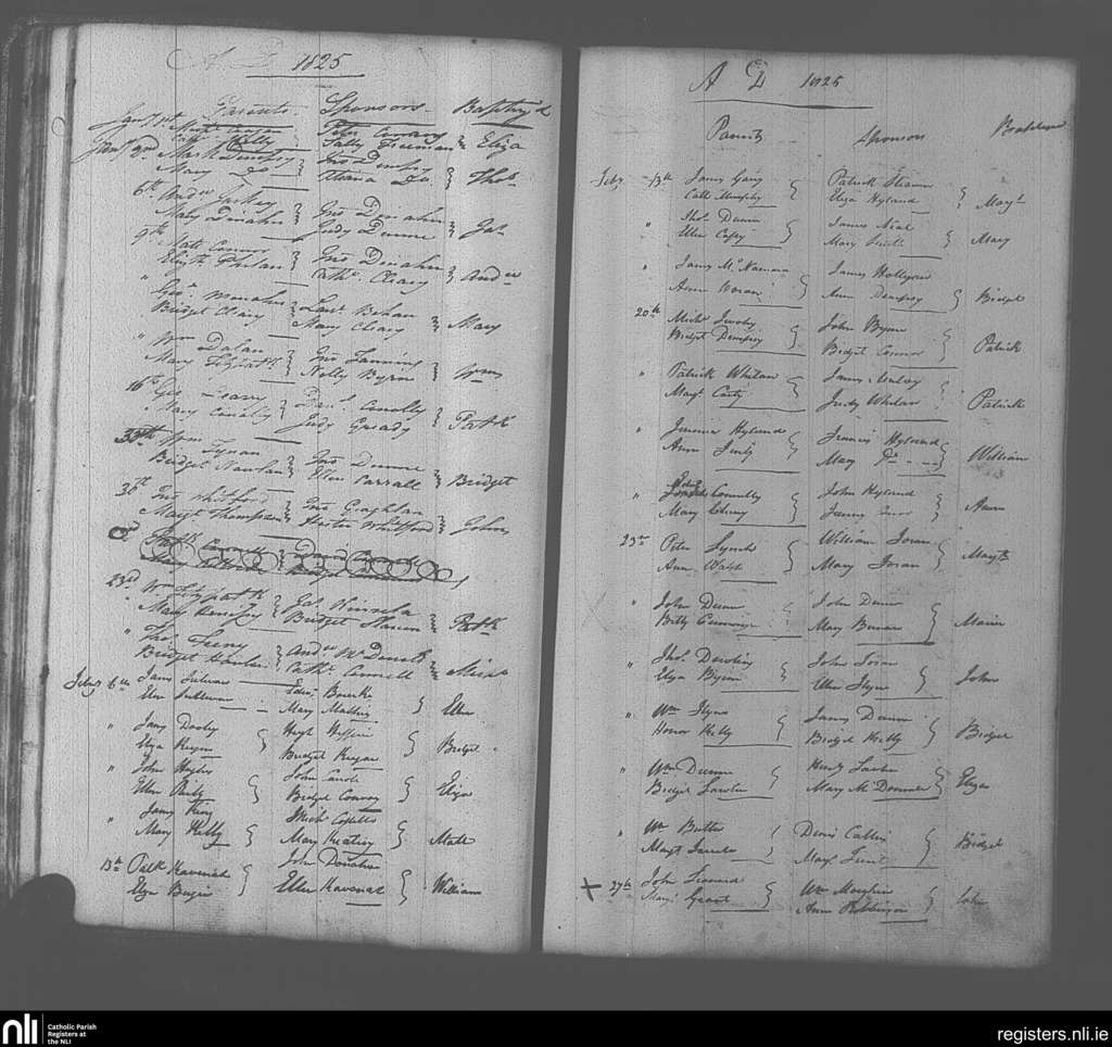 Portarlington; County of Laois, Offaly; Diocese of Kildare and Leighlin. Baptisms, Jan. 1825 to Feb. 1825