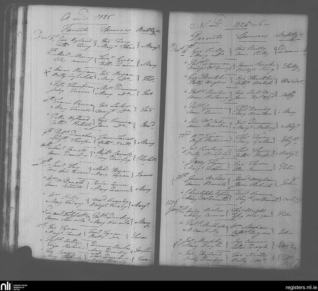 Portarlington; County of Laois, Offaly; Diocese of Kildare and Leighlin. Baptisms, Dec. 1825 to Jan. 1826