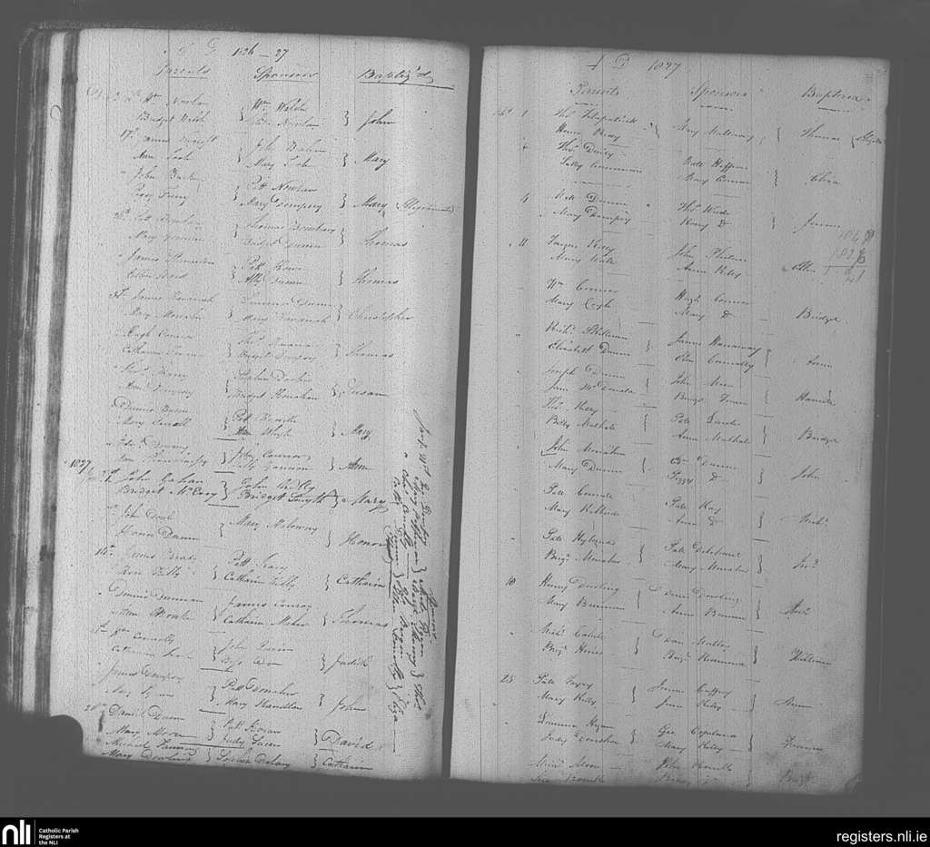 Portarlington; County of Laois, Offaly; Diocese of Kildare and Leighlin. Baptisms, Dec. 1826 to Feb. 1827