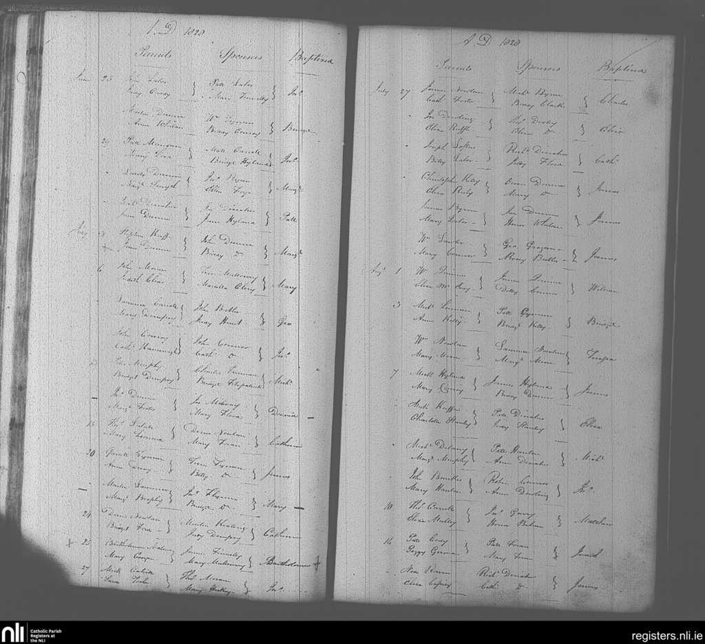Portarlington; County of Laois, Offaly; Diocese of Kildare and Leighlin. Baptisms, June 1828 to Aug. 1828
