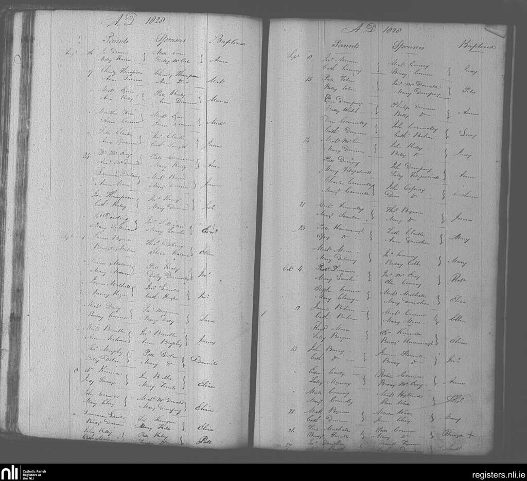 Portarlington; County of Laois, Offaly; Diocese of Kildare and Leighlin. Baptisms, Aug. 1828 to Oct. 1828