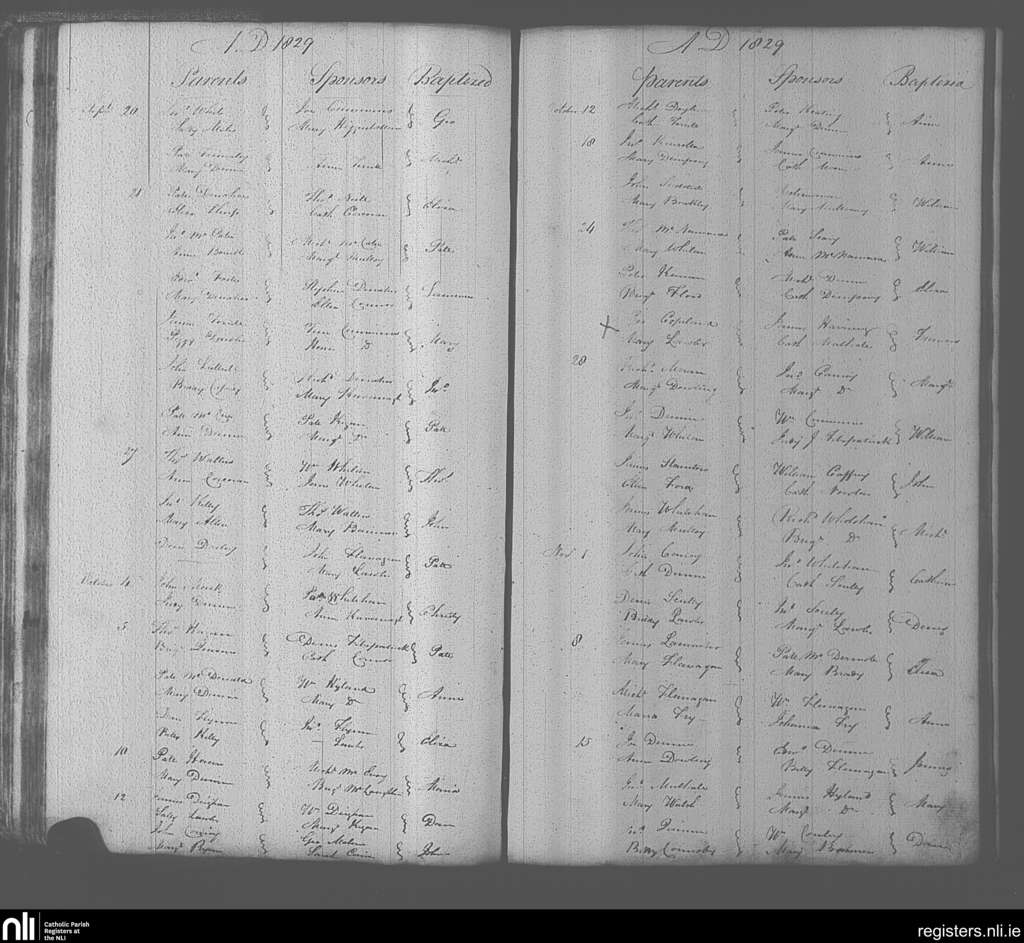 Portarlington; County of Laois, Offaly; Diocese of Kildare and Leighlin. Baptisms, Sep. 1829 to Nov. 1829