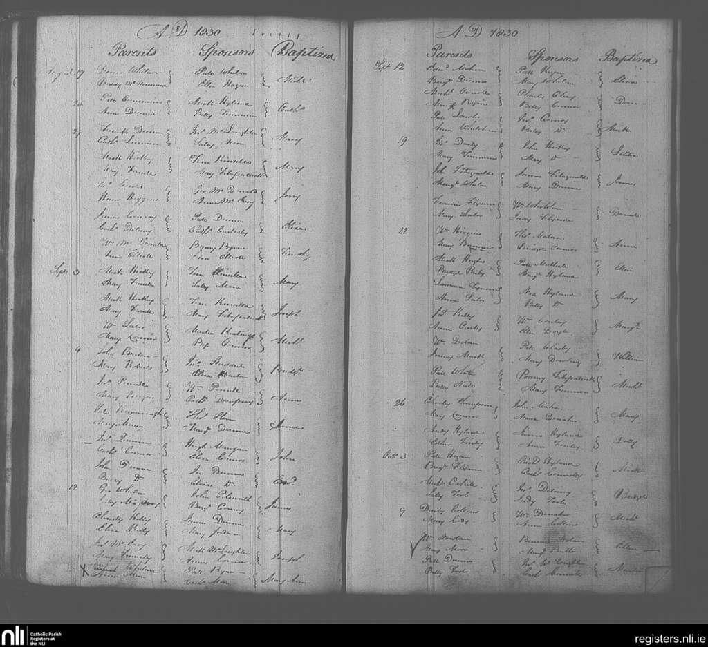Portarlington; County of Laois, Offaly; Diocese of Kildare and Leighlin. Baptisms, Aug. 1830 to Oct. 1830