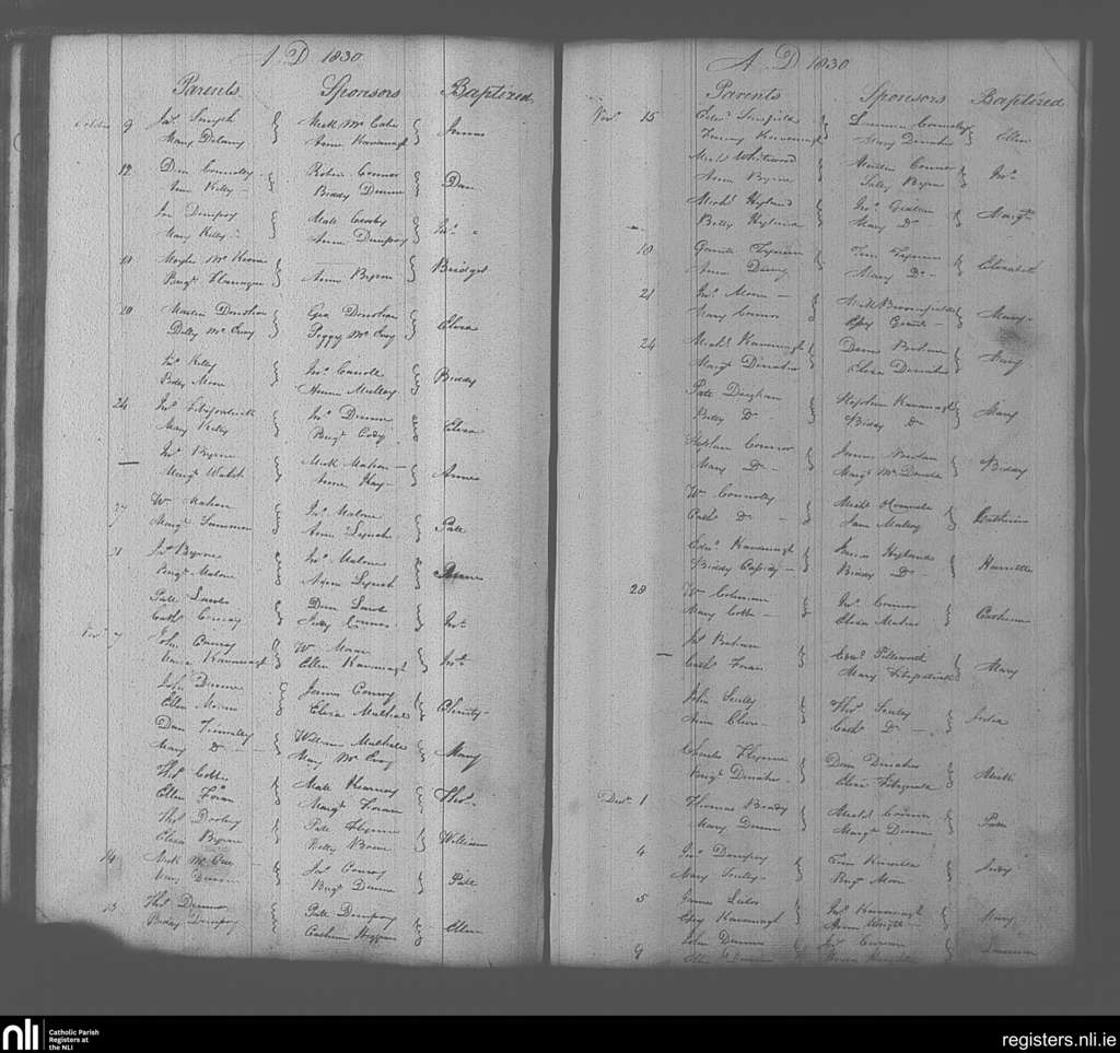 Portarlington; County of Laois, Offaly; Diocese of Kildare and Leighlin. Baptisms, Oct. 1830 to Dec. 1830