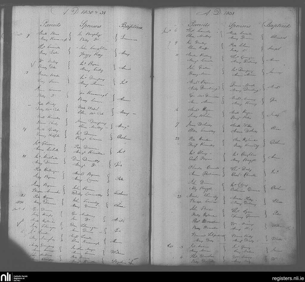 Portarlington; County of Laois, Offaly; Diocese of Kildare and Leighlin. Baptisms, Dec. 1830 to Feb. 1831