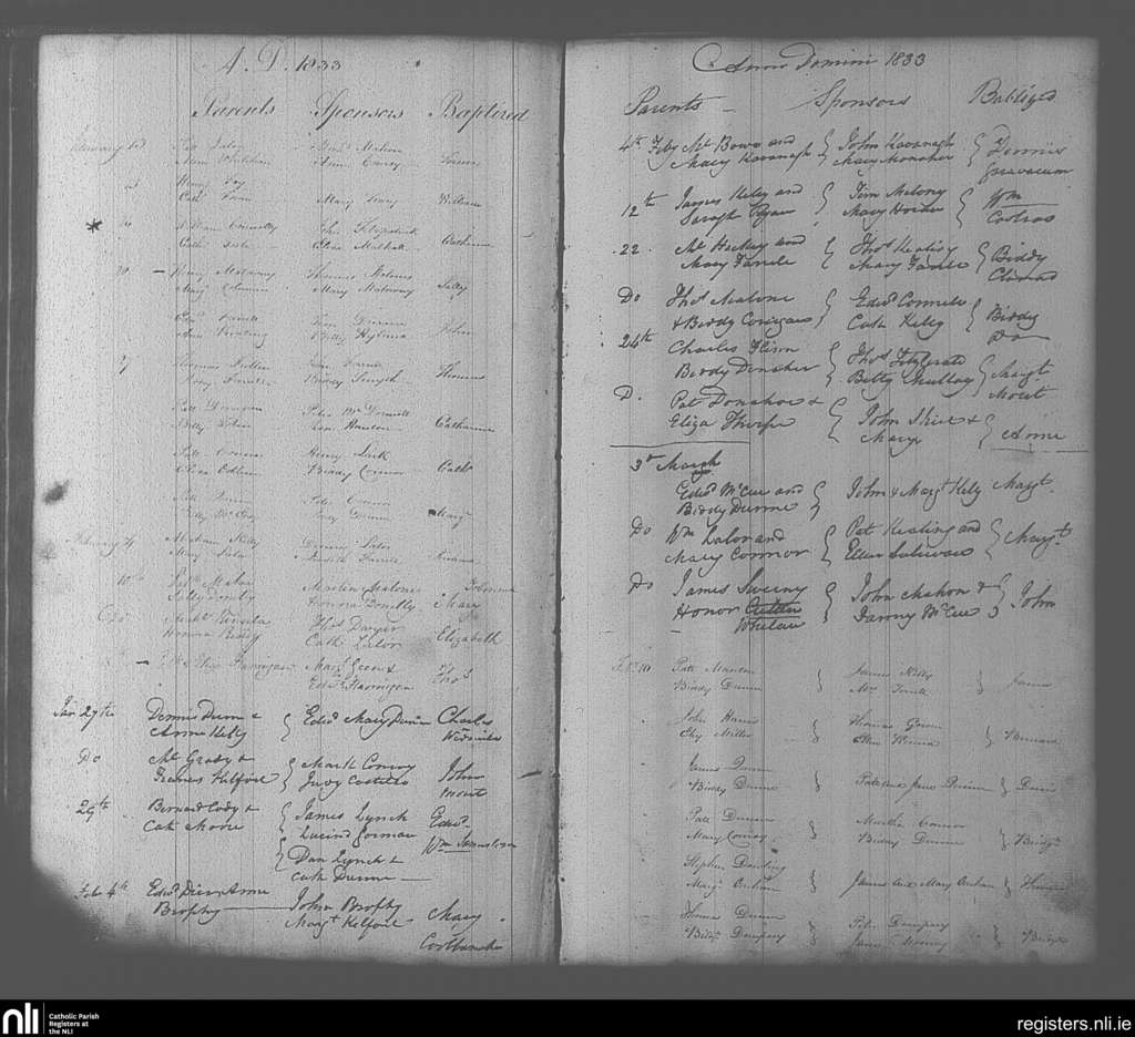 Portarlington; County of Laois, Offaly; Diocese of Kildare and Leighlin. Baptisms, Jan. 1833 to Mar. 1833