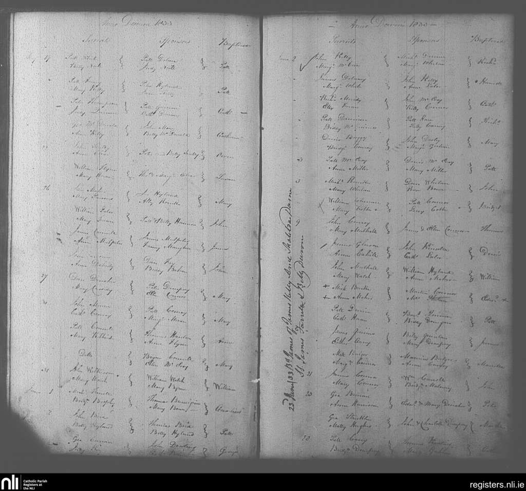 Portarlington; County of Laois, Offaly; Diocese of Kildare and Leighlin. Baptisms, May 1833 to June 1833