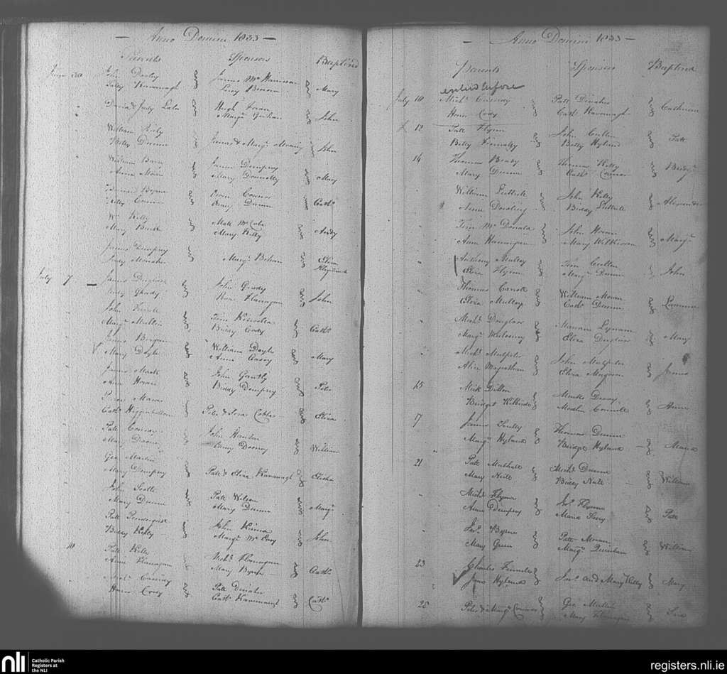 Portarlington; County of Laois, Offaly; Diocese of Kildare and Leighlin. Baptisms, June 1833 to July 1833