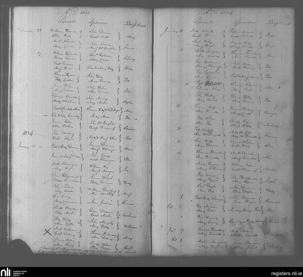 Portarlington; County of Laois, Offaly; Diocese of Kildare and Leighlin. Baptisms, Nov. 1833 to Feb. 1834
