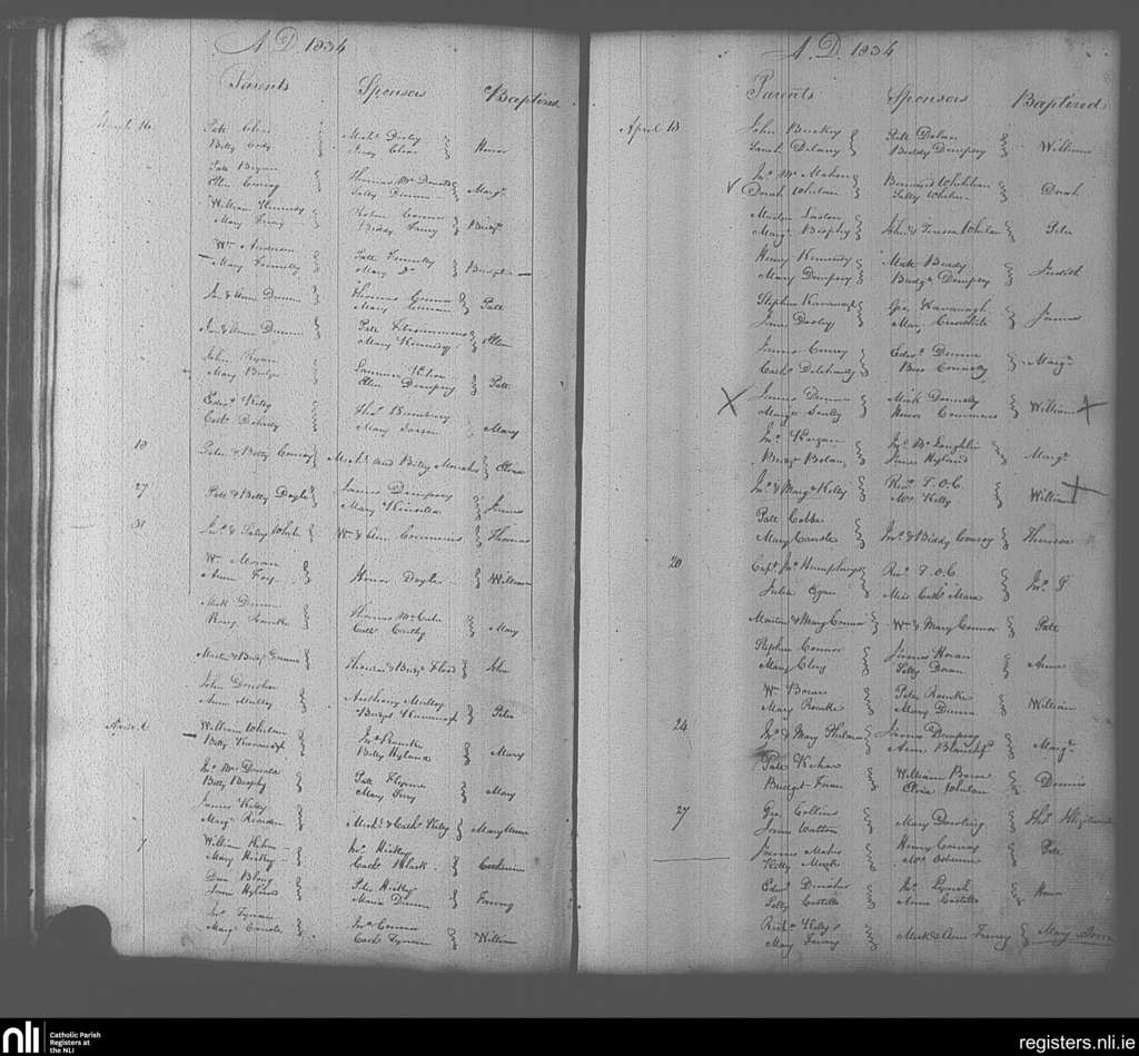 Portarlington; County of Laois, Offaly; Diocese of Kildare and Leighlin. Baptisms, Mar. 1834 to Apr. 1834