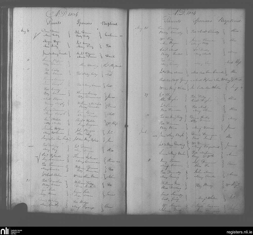 Portarlington; County of Laois, Offaly; Diocese of Kildare and Leighlin. Baptisms, May 1834 to June 1834