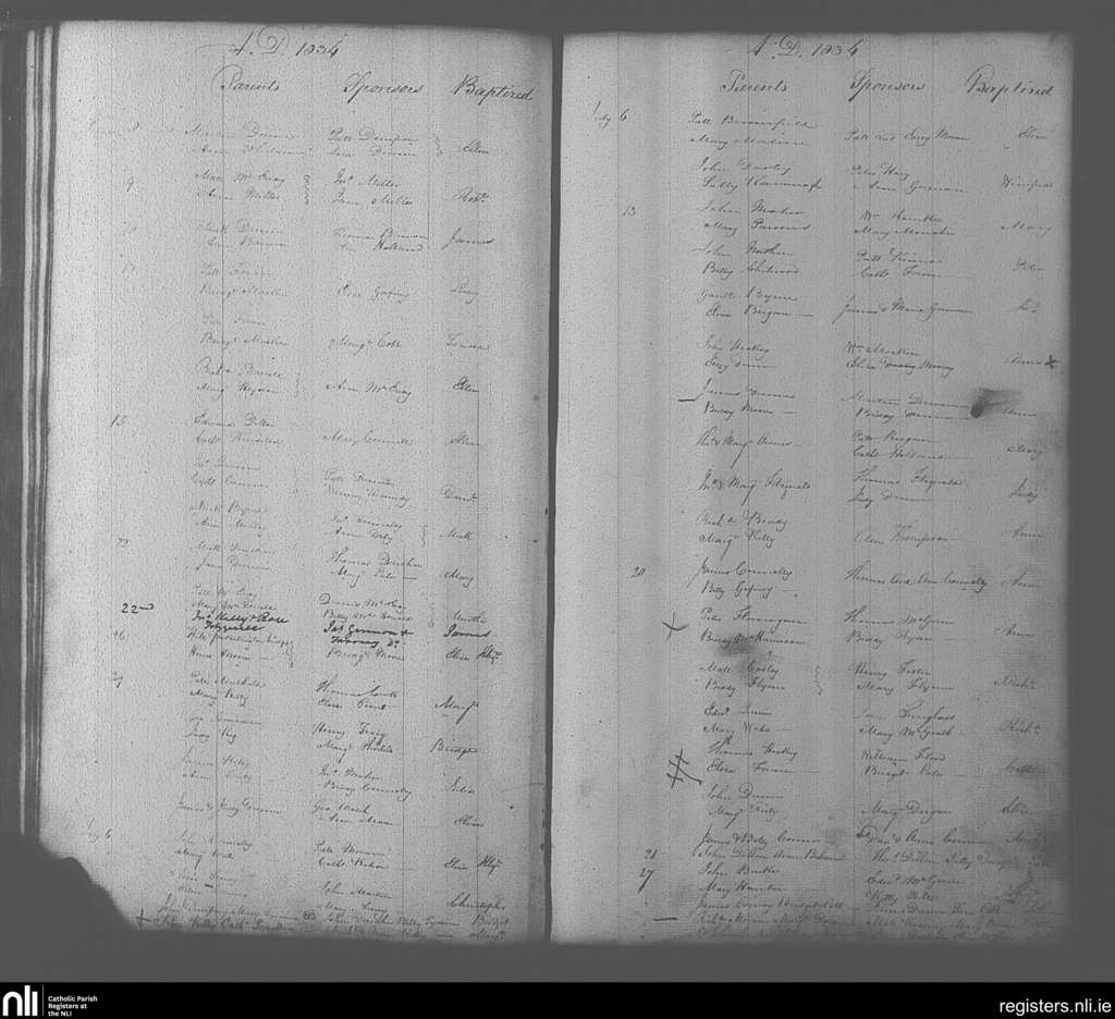 Portarlington; County of Laois, Offaly; Diocese of Kildare and Leighlin. Baptisms, June 1834 to July 1834