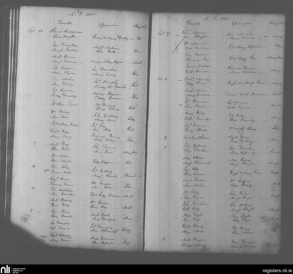 Portarlington; County of Laois, Offaly; Diocese of Kildare and Leighlin. Baptisms, Sep. 1835 to Oct. 1835