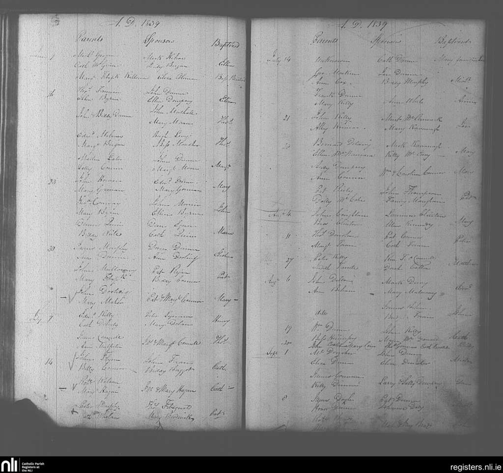 Portarlington; County of Laois, Offaly; Diocese of Kildare and Leighlin. Baptisms, June 1839 to Sep. 1839