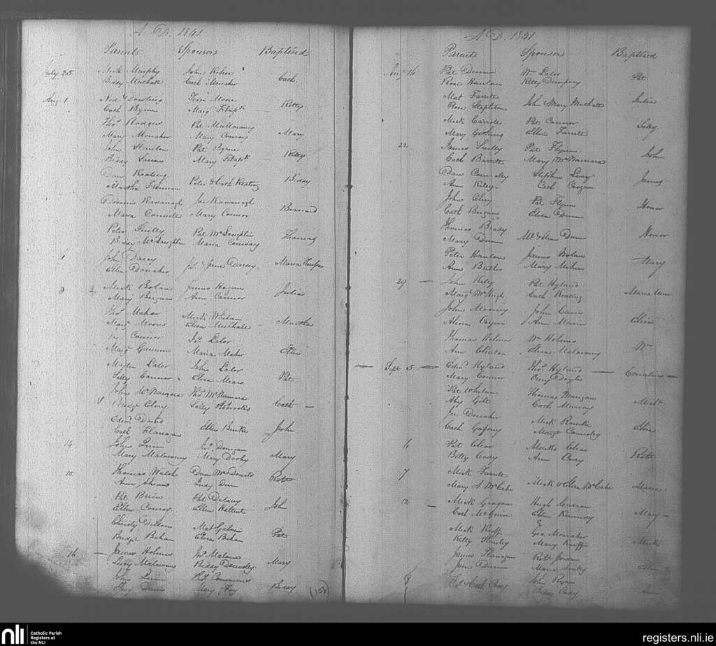 Portarlington; County of Laois, Offaly; Diocese of Kildare and Leighlin. Baptisms, July 1841 to Sep. 1841