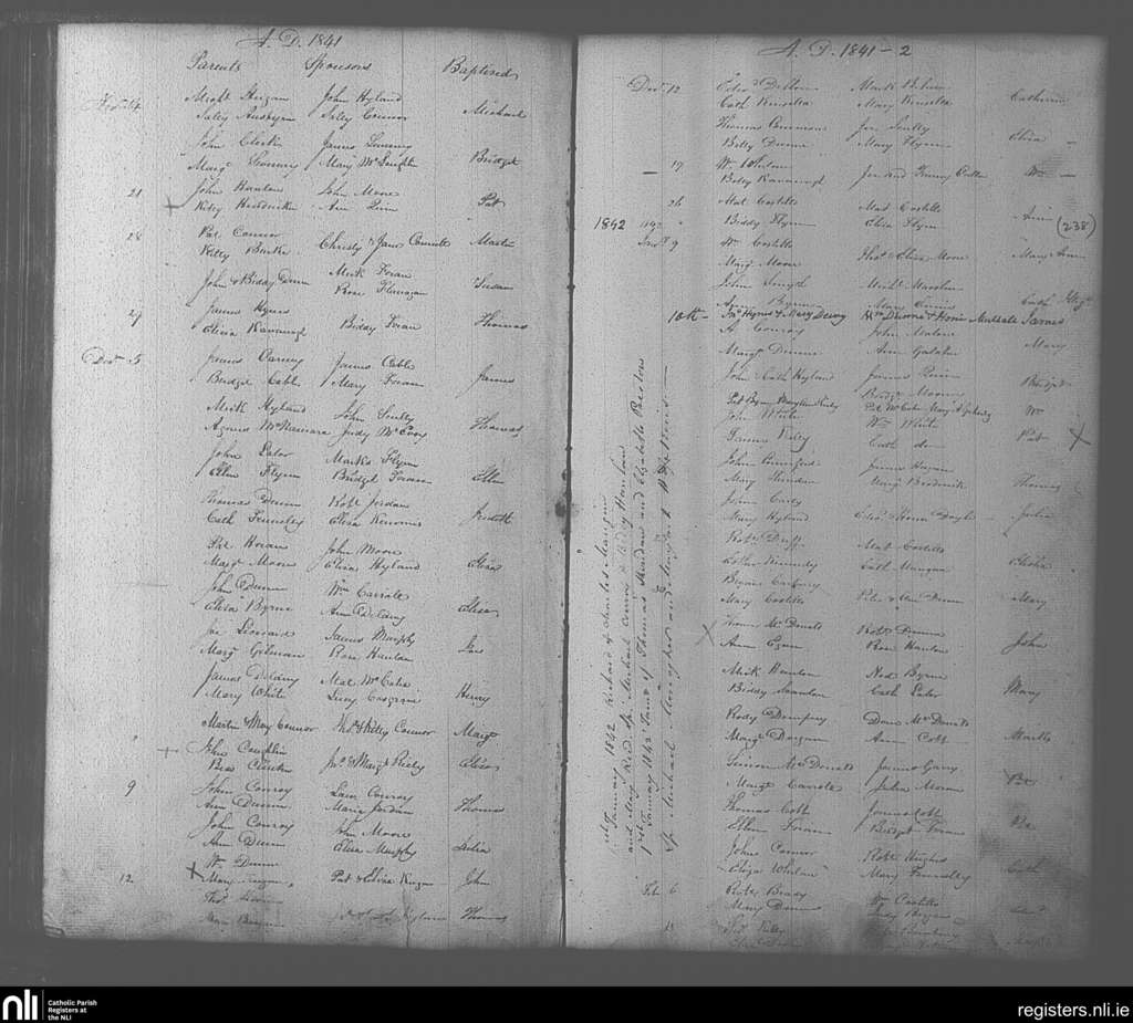 Portarlington; County of Laois, Offaly; Diocese of Kildare and Leighlin. Baptisms, Nov. 1841 to Feb. 1842
