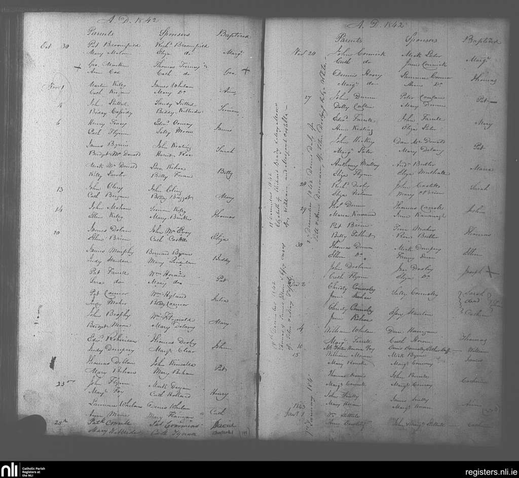 Portarlington; County of Laois, Offaly; Diocese of Kildare and Leighlin. Baptisms, Oct. 1842 to Jan. 1843